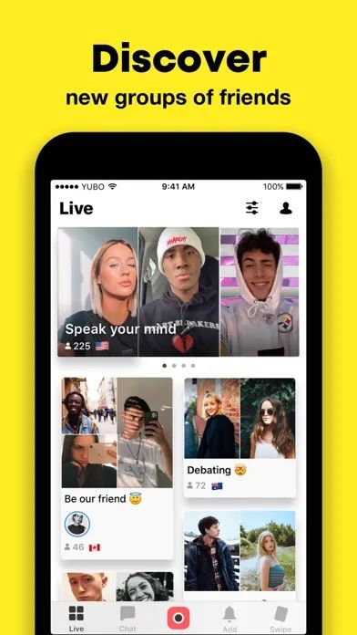 Yubo想打破目前社交媒體讓人壓力山大的模式,在這裡沒有關註和點讚功能,因為一旦算法和讚開始出現,每個人都會將重心放在展示最好的自我上,可能會用假面具示人,而不是真誠交友。