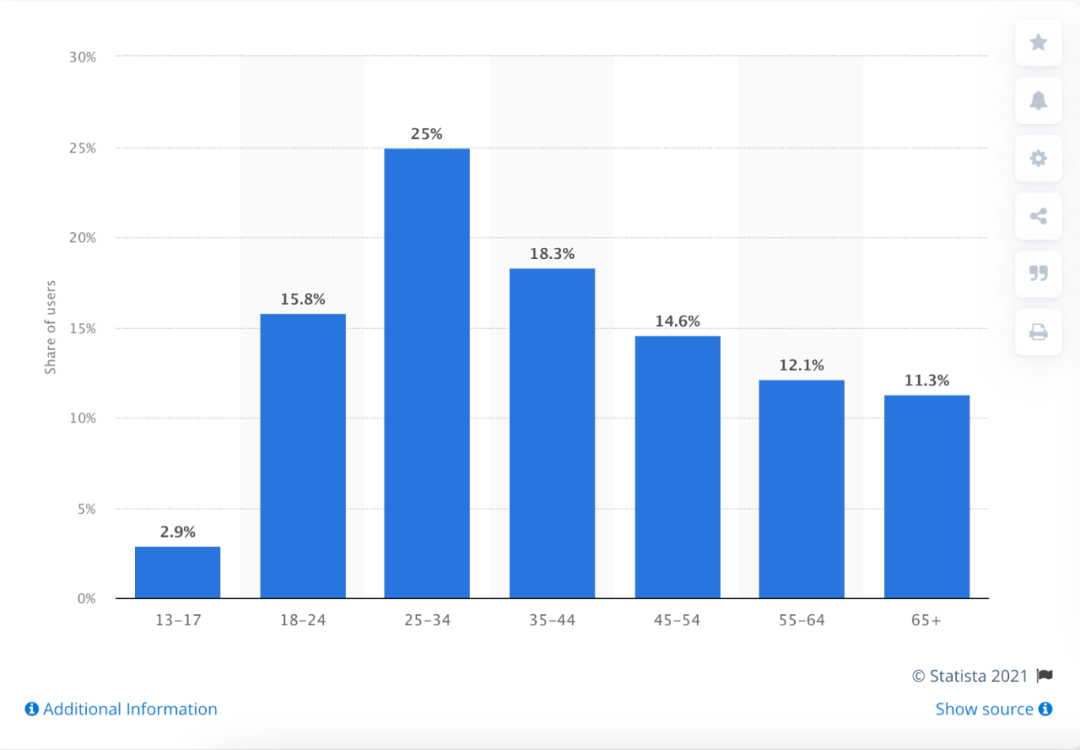 作為目前最夯的網上交友平台之一,Instagram擁有約10億的月活用戶和約5億的日活用戶,但從創立至今它並不允許13歲以下的用戶註冊,因此也會出現青少年玩TikTok被轉發到Instagram上引發許多「老人」疑惑的笑話出現,這讓它在和Snapchat及TikTok等青少年更偏愛的平臺競爭上也處於劣勢狀態。