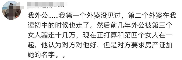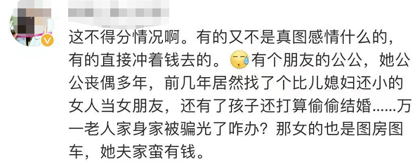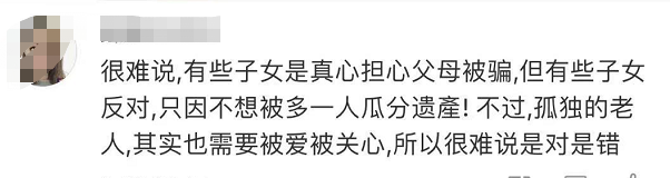 但事實上,很多老人的婚姻,也就是因為利益交換,我照顧你,你能給我一部分錢,甚至可能將來的房產等遺產。
