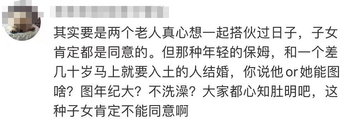 這麼說吧,現實生活裡,老人有個年紀相差較大的人照顧,對於子女來說,求之不得。但前提是,你們不能結婚。