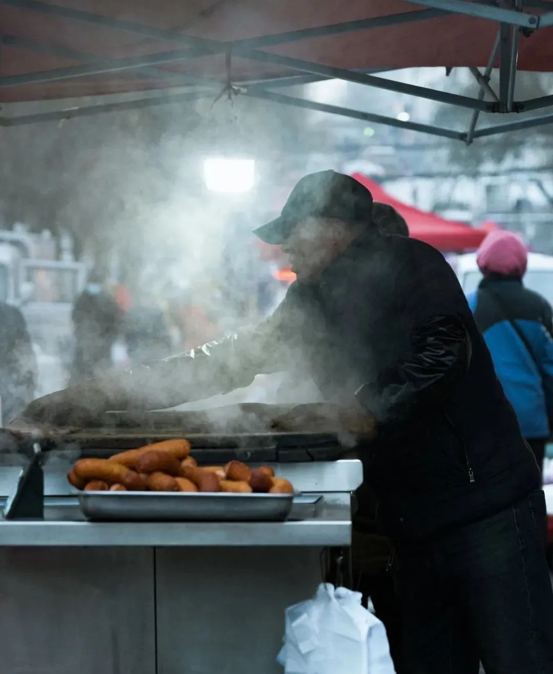 烤串的生意會做到深夜,父母年紀漸長,不再能承受熬夜的作息,學楓成了店裡留到最後招呼客人的人。這家店已經開了十幾年,許多客人也跟著吃了十幾年,學楓時刻觀察著熱鬧店面裡的人群來往。