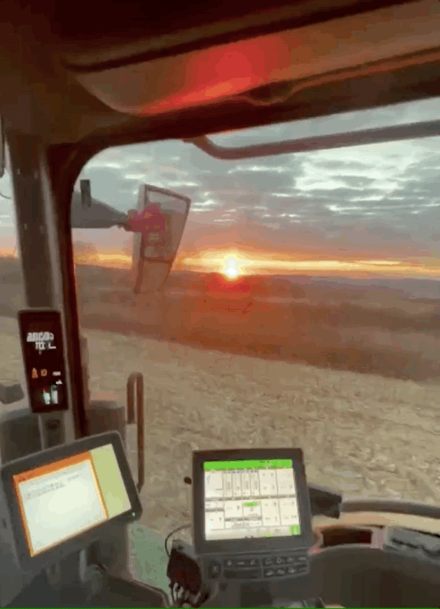 在他朋友圈有一段小視訊,他一邊駕駛拖拉機,一邊看到遠方田壟邊上的太陽漸漸落下,夕陽照進了他的駕駛室。對他來說,那是一個日常勞作裡的高光時刻。