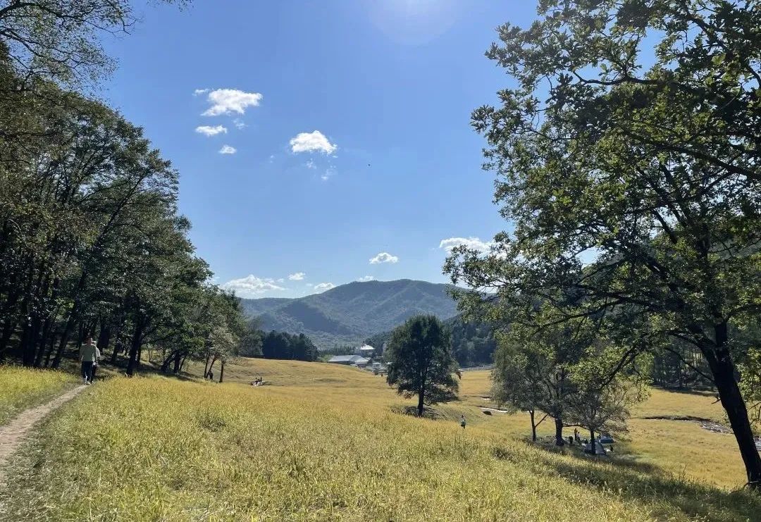 鶴崗城區公園秋景,道路寬闊,樹木繁盛