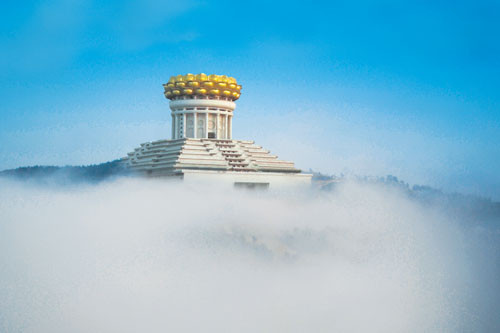 ▲堪稱「世界之最」的四十八瓣、直徑56.7米、高16米的鍛銅貼金蓮花