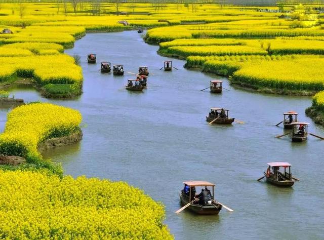 來到興化油菜花海,一定要搭船在水中遊覽一次,你會發現它比烏鎮等江南水鄉的統一色調,更加讓你驚艷,穿行金色花海,邂逅詩意旅行。