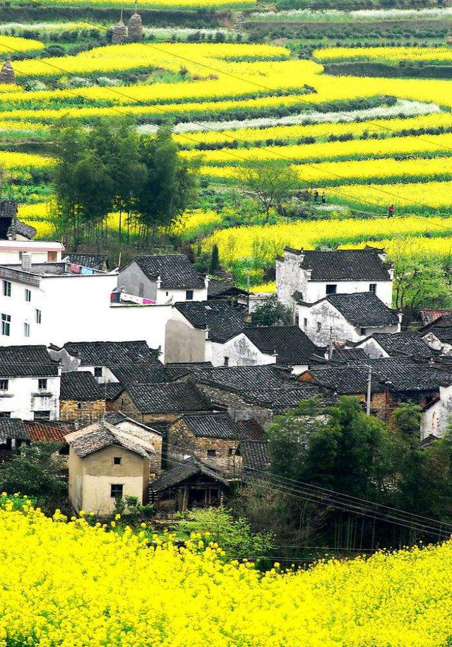 徽州老宅的白牆黛瓦,油菜花花海的金黃與碧綠,高山地區特有的山間雲霧纏繞,讓篁嶺美成一個獨特的春天。