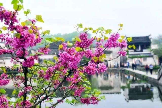 萬物吐露出新芽,石板路的縫隙間,兩旁的枝頭上,星星點燈的綠和含苞待放的花,一到春天,宏村就美得不像話。
