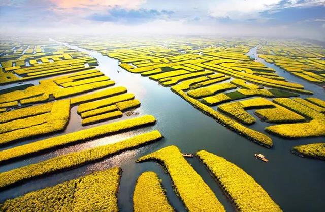 在這裡,花垛田的情調不輸威尼斯,每一處的轉角都能遇見驚喜,千百垛田漂浮於綠水中央,雲蒸霞蔚,煞是壯觀。