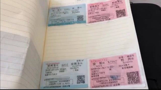 史文龍原本以為這只是一個再普通不過的筆記本,但翻開以後,卻發現裡面貼滿了車票。按照車票資訊顯示,是2016年至今,從鄭州到安陽的車票。