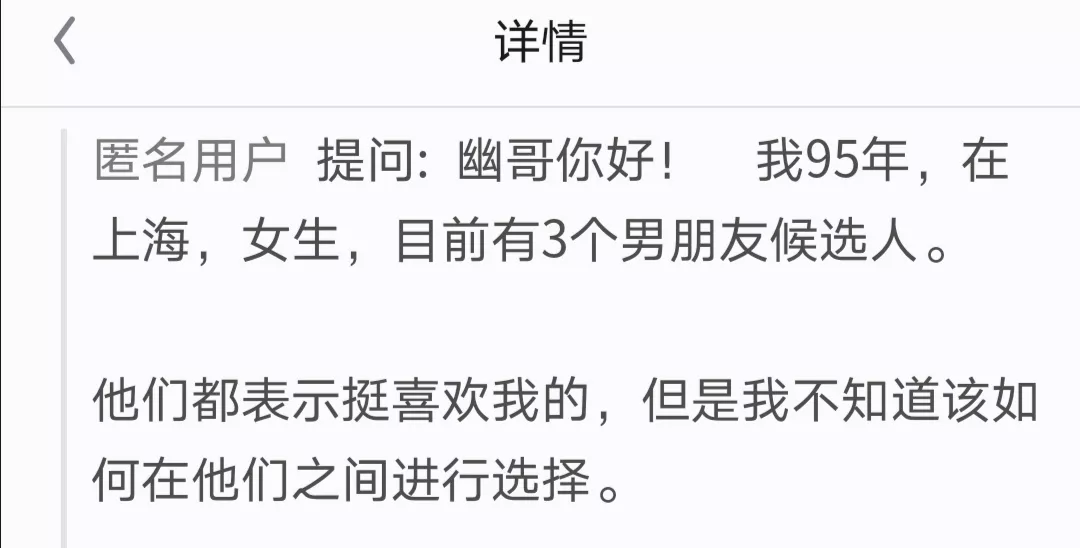 最後,對於如下這樣,追求者眾多的單身女孩,因為女挑男上限比較高,女孩更多上遷婚,所以,我的建議是:先給這幾個男孩打分,然後去掉不及格的;接著從分數最高的開始相處;處不來就迅速換下一位,但盡量不要腳踏兩隻船。