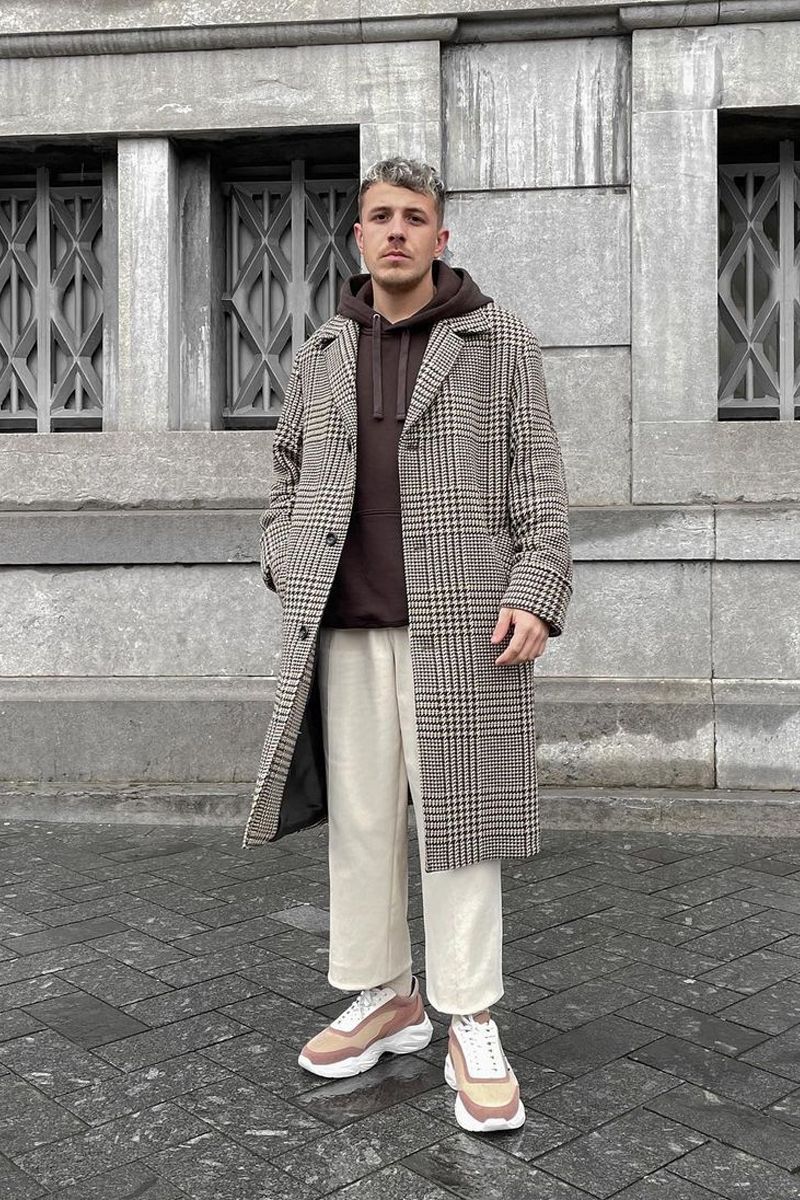 矮個子男士在進行冬季搭配時,最容易受到厚重感的影響,從而拉低身高的視覺效果,讓造型看起來不夠出彩。因此,大家就可以通過搭配來擺脫厚重,讓造型看起來更加輕盈利落。九分褲與運動鞋的組合就能夠凸顯出腳踝,讓造型看起來時髦而有活力。