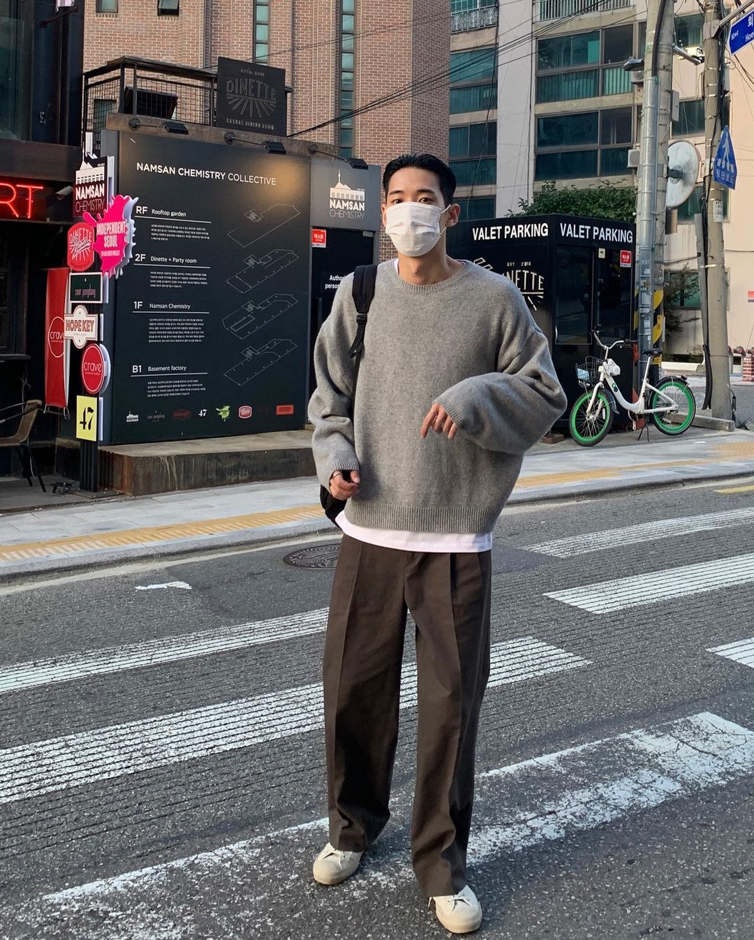 而在比較南方的男生,例如廣東廣西海南這些地方,冬天的溫度一般不會太低,基本上是用不著羽絨服或者大衣的。選擇一件黑色毛衣作為外套就足夠了,搭配一條灰色褲子以及小白鞋,就特別好看。