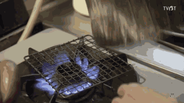 爐子旁邊的小木板上寫著「正開著煤氣呢,別忘了」。