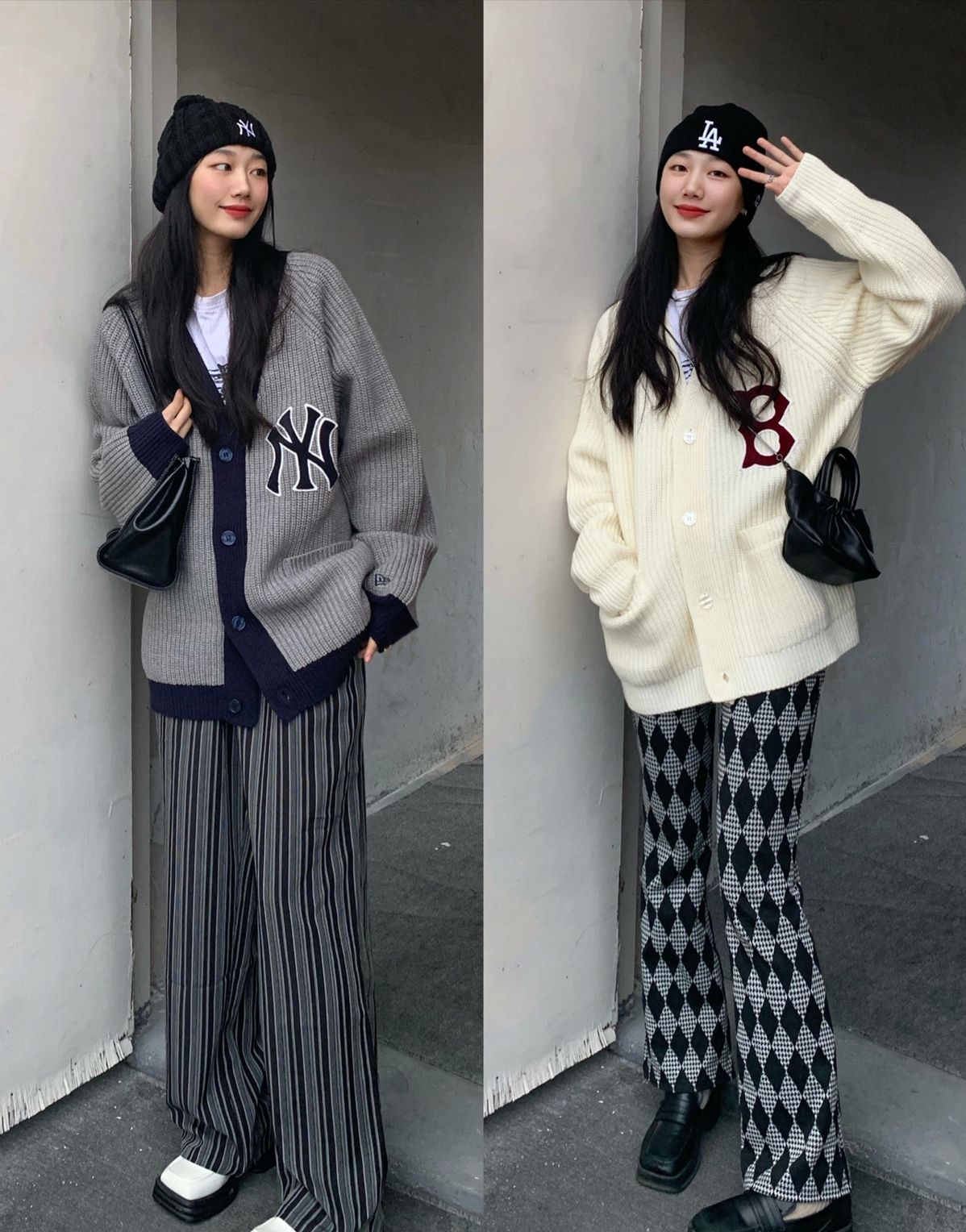 那麼,如果大家想要走韓風路線,那麼還是建議大家選擇針織開衫,寬鬆版型的中長款的針織開衫,從設計上來看便有著一定的慵懶姿態,同時也恰好體現出了一種隨性的自由感,搭配上微喇款式的牛仔褲,或者是垂墜感較強的拖地褲,便可以瞬間轉變成韓國女生,優雅大氣,甜美淑女看起來十分洋氣。