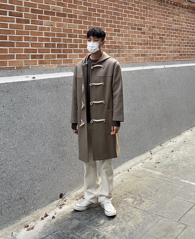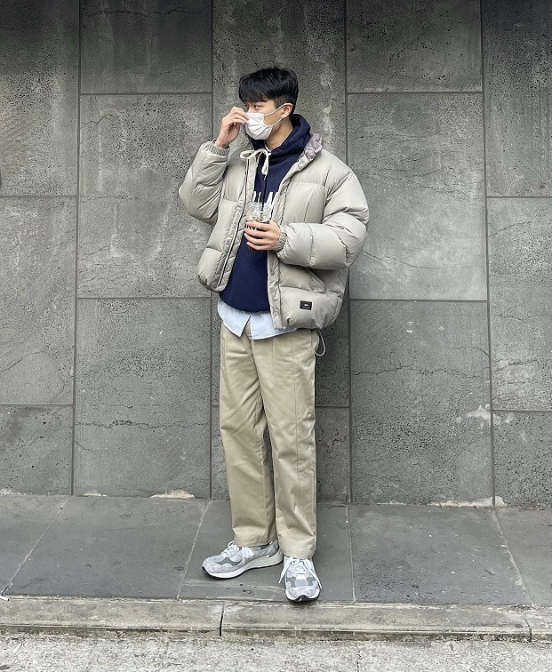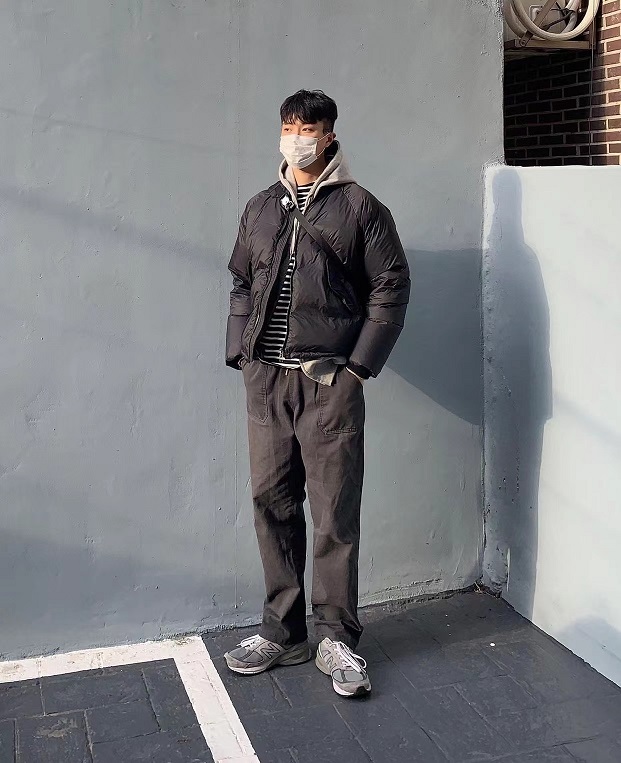 最後搭配灰色運動鞋,搭配和諧一致,很有韓系美男的感覺~