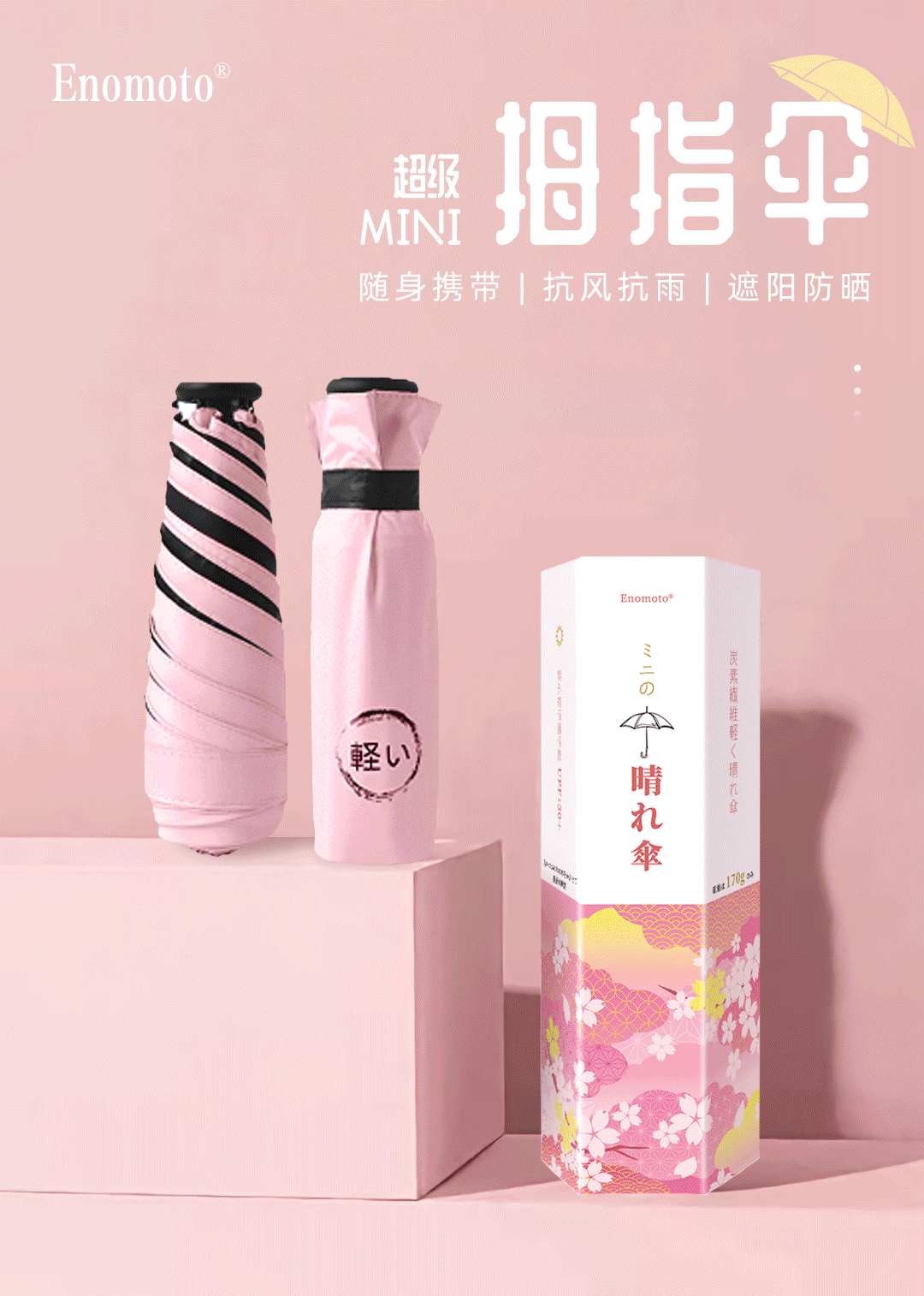 傳統的晴雨傘太過笨重,要麼不方便攜帶,要麼包包鼓鼓地顯得很臃腫。而一把日本Enomoto「拇指」晴雨傘,能讓你輕鬆出行。