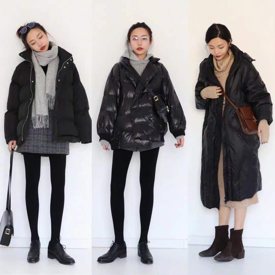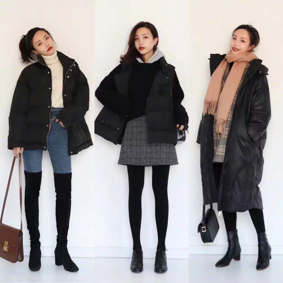 短款的羽絨服,盡量組合修身的小黑褲。上寬下緊的風格,顯高又洋氣,當然對腿型的考驗也比較大。