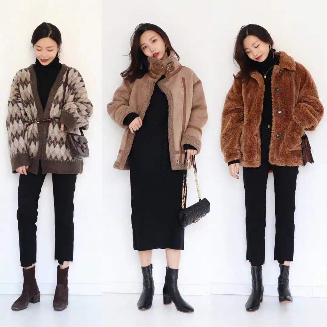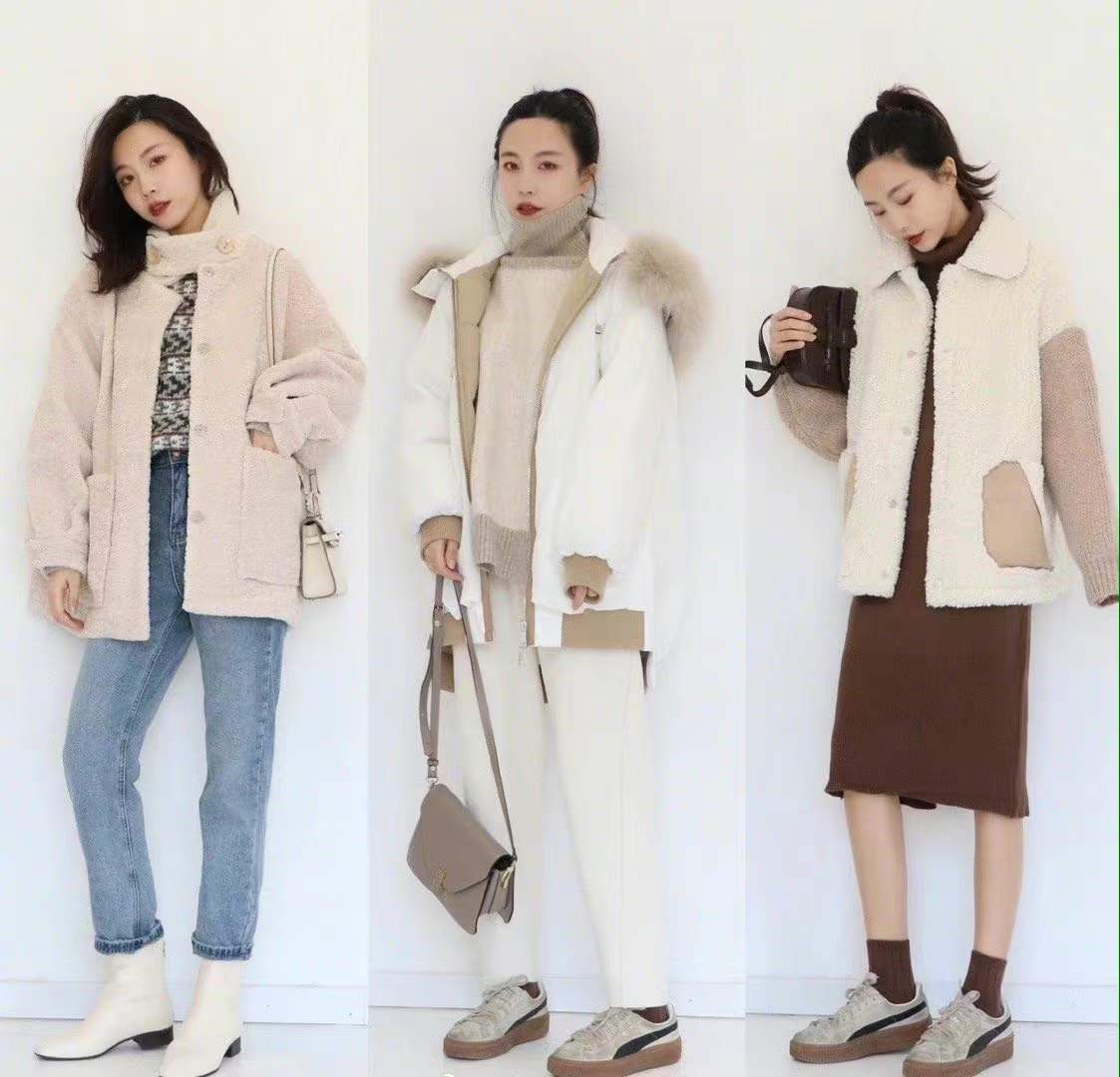 泰迪毛的外套,毛茸茸的質感,溫暖厚實。帶著豪華與貴氣,很容易顯老顯土氣。配色上需要更加謹慎。組合黑白灰,經典簡約。