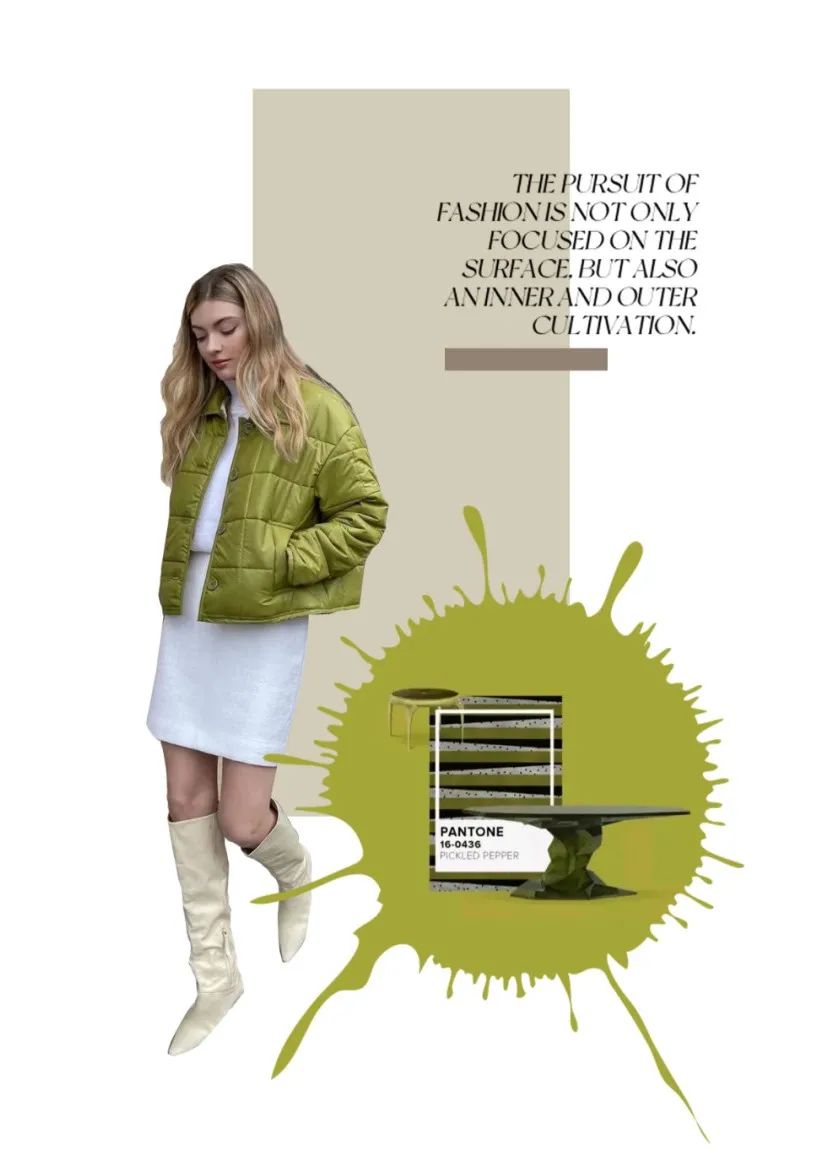 PANTONE發布的年度流行色泡菜辣椒綠(Pickled Pepper)也是個不錯的選擇,在羽絨服大行其道的北方地區,分分鐘點亮沉悶的冬日黑白灰街道。