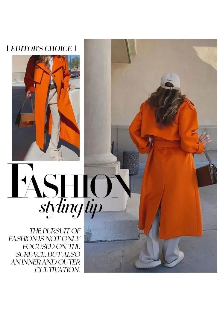 在被沉穩深色系籠罩得透不過氣的冬季,試問誰不想擁有一件奪目搶眼的橘褐色大衣呢?