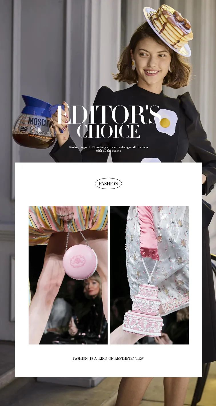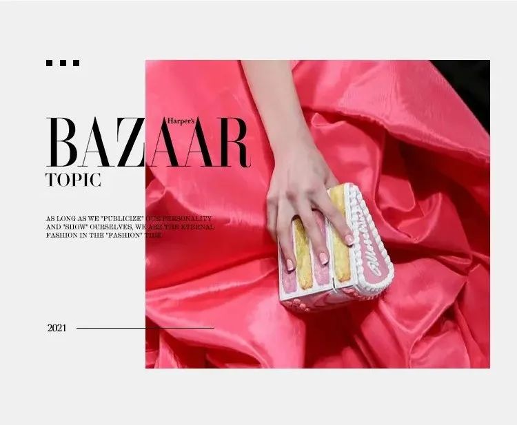 芝士化為釘珠亮片,麵包變為蓬松披肩,奶油冰淇淋連衣裙將身體包裹得恰到好處,加之往季脫胎自洛可可風情而生的甜點造型包袋,分分鐘將味蕾打開,食欲拉滿。