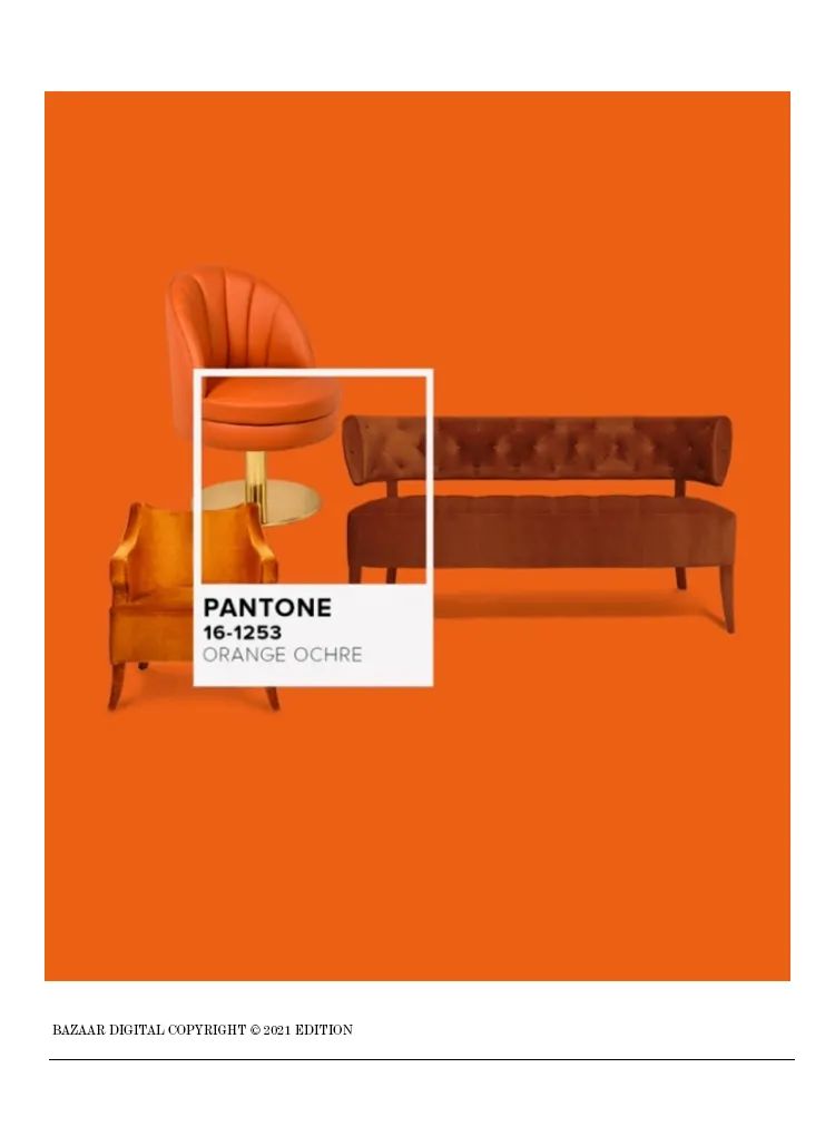 高飽和度的橘褐色(Orange Ochre)像是12點炙熱火辣的陽光,又像在盤中漂浮擴散的辛辣調料,為人帶來一劑視覺上的醒腦膠囊。就連PANTONE發布的2021-2022春夏十大流行色中也不乏它的身影。