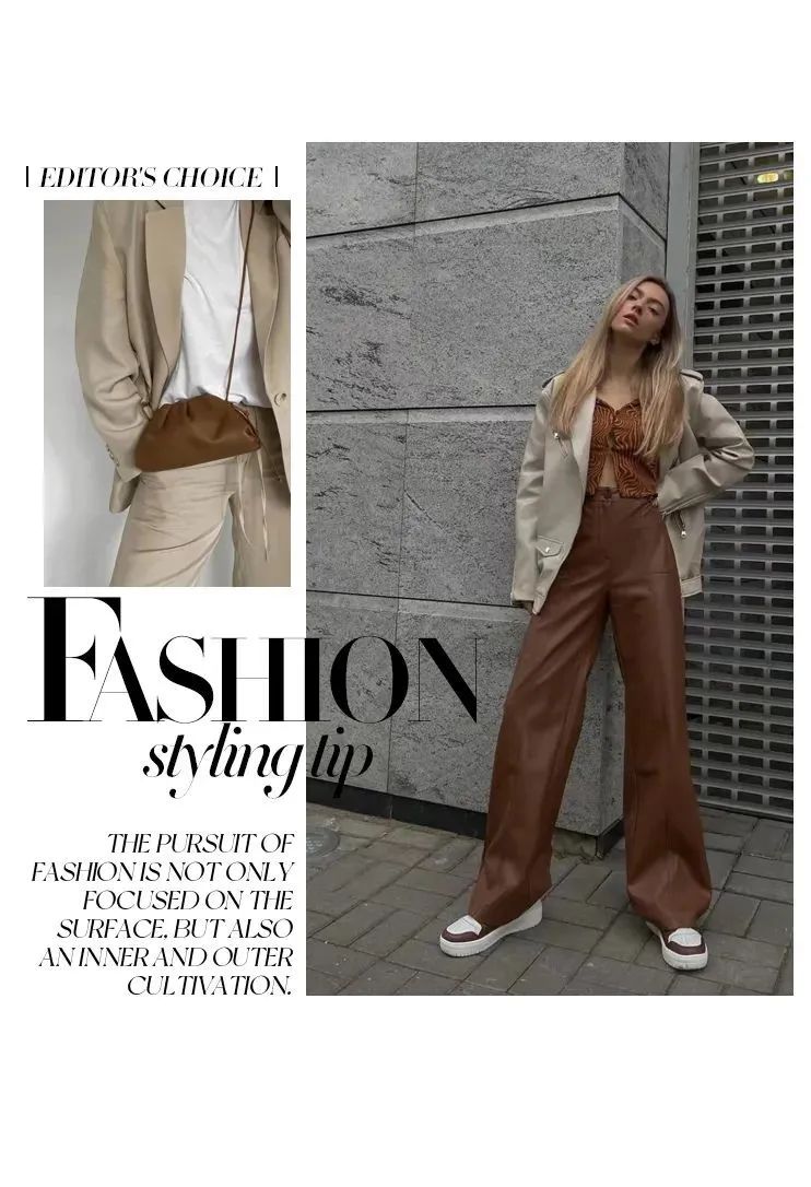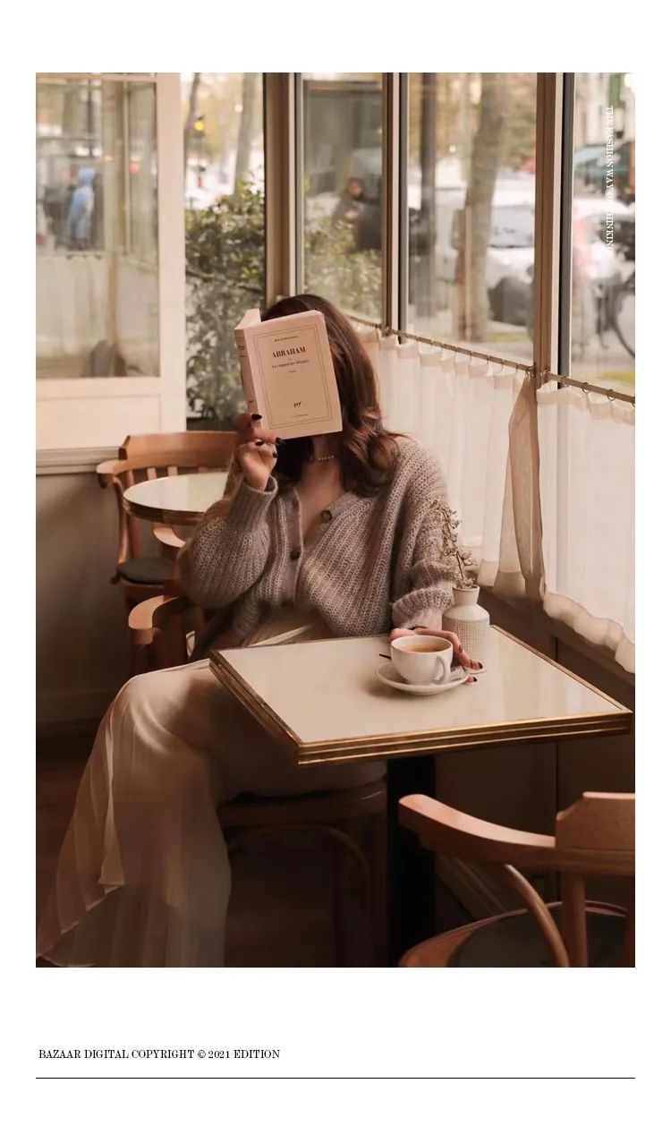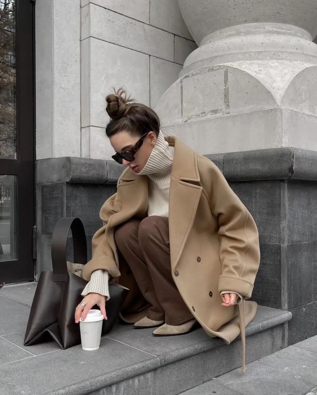 像咖啡的苦澀與可頌的微甜交織,軟糯的淺咖色針織開衫與杏色長褲以低對比度襯托出恰到好處的閒適感,是冬日室內穿搭的不二選擇。