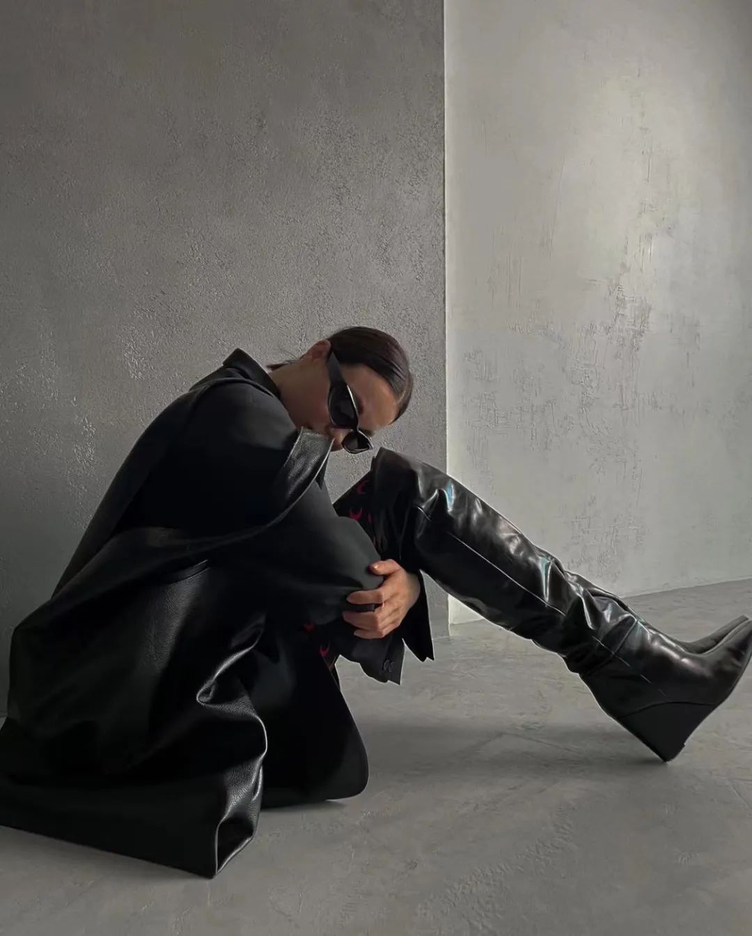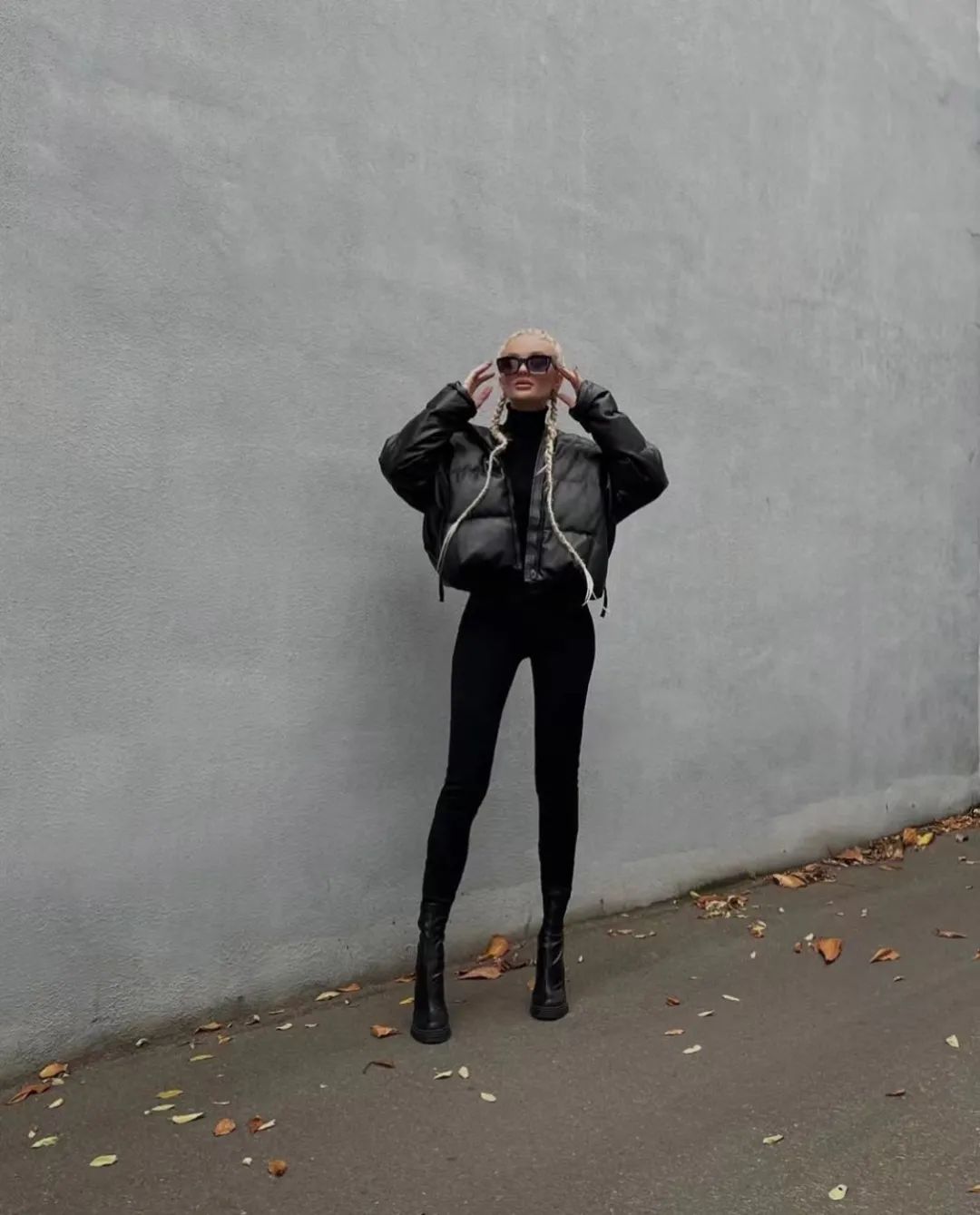 說到酷感朋克風,怎能少了帶有光澤感的all black造型?純黑色及膝皮靴與皮質棉服都是冬季很難出錯的選擇,可鹽可甜又顯瘦,可以不費吹灰之力將氣質提升做到極致。
