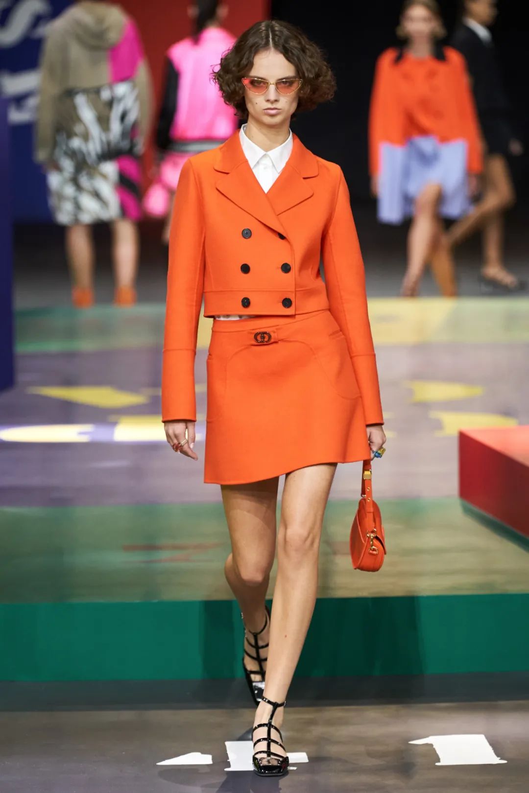 這一「辛辣配色」在Dior 2022春夏成衣秀上以驚人比例呈現。源自20世紀60年代馬克·博昂時期的流暢廓形與純粹色塊從簡約設計語言中跳脫而出,以大面積的單一色調斬獲令人過目不忘的魔力。