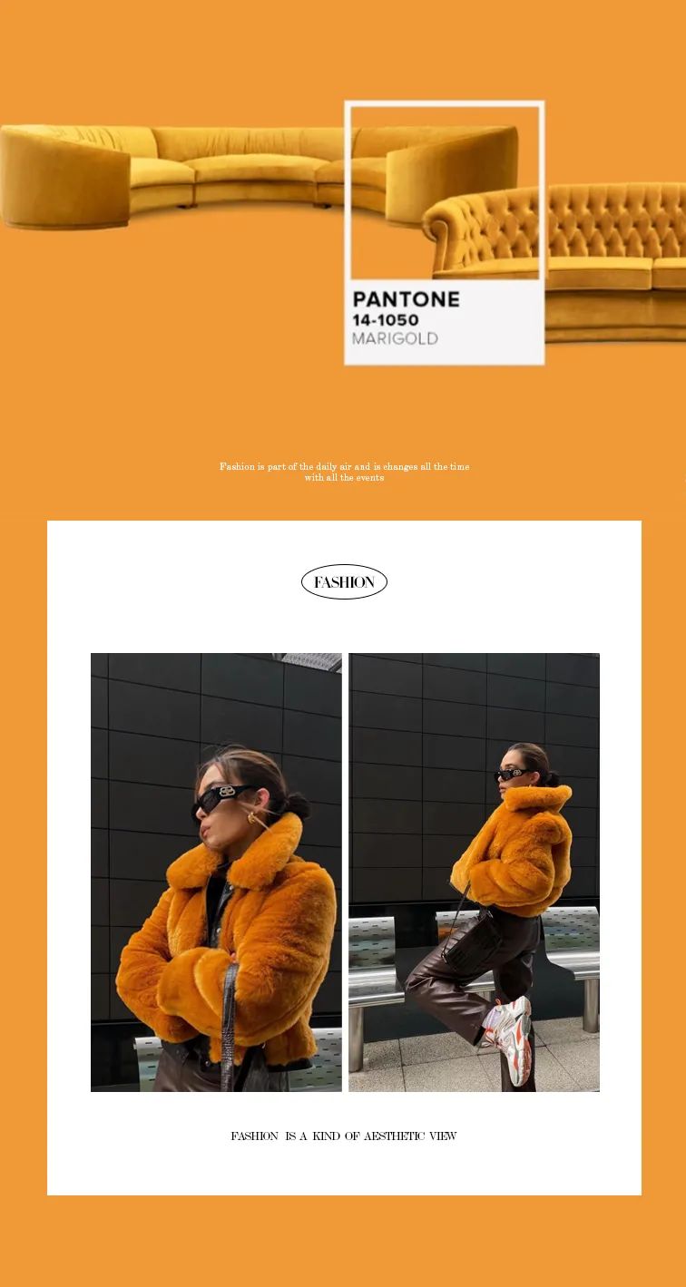 說到這裡,你衣櫃中的毛絨外套還停留在清一色的駝色系嗎?是時候給它們點兒顏色看看了。PANTONE不久前發布的流行色金盞花橘(Marigold)就是個不錯的選擇,暖色調皮草能夠帶來視覺和觸覺上的雙重保暖,何樂而不為呢?