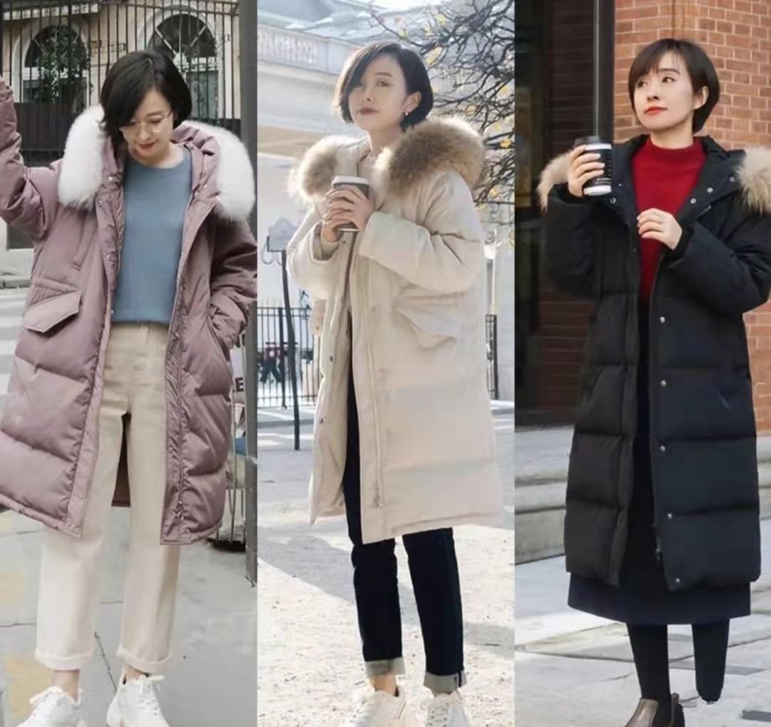 中長款羽絨服長度大多在膝蓋上方或者下方一點,兼備保暖與實用,在顏色上,小個子女生可以選擇黑色,又或者各種低飽和度彩色系、柔和色,襯托浪漫優雅的氣氛感。