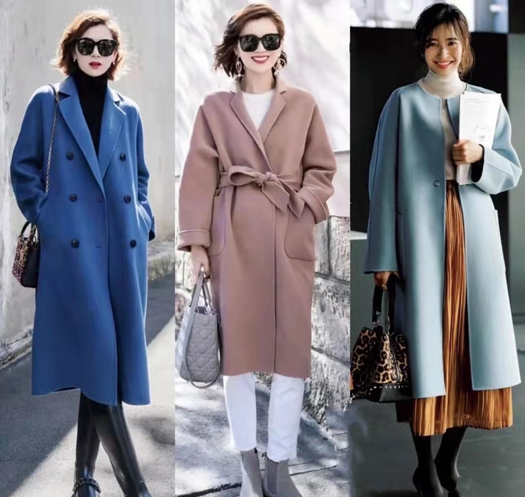 例如上面這類長度在膝蓋下方一點的純色系大衣,A字版型配合簡約流暢,可以襯得身材更加高挑修長。