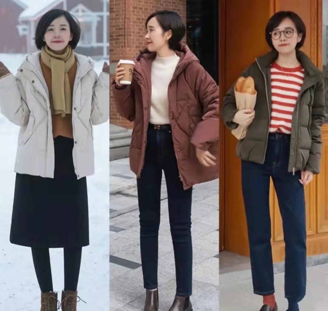 短款麵包服在冬季最常見,因為其長度在腰部下方、胯部附近,所以整體上不會壓個子,是小個子女生可以輕鬆駕馭的款式。