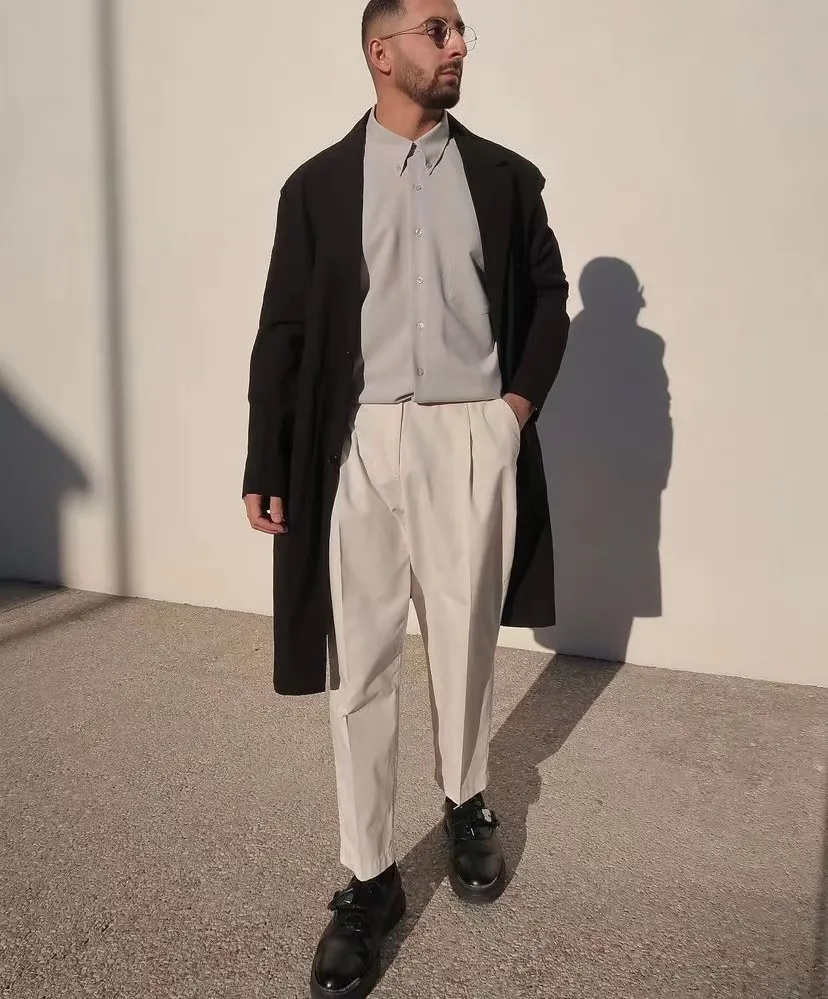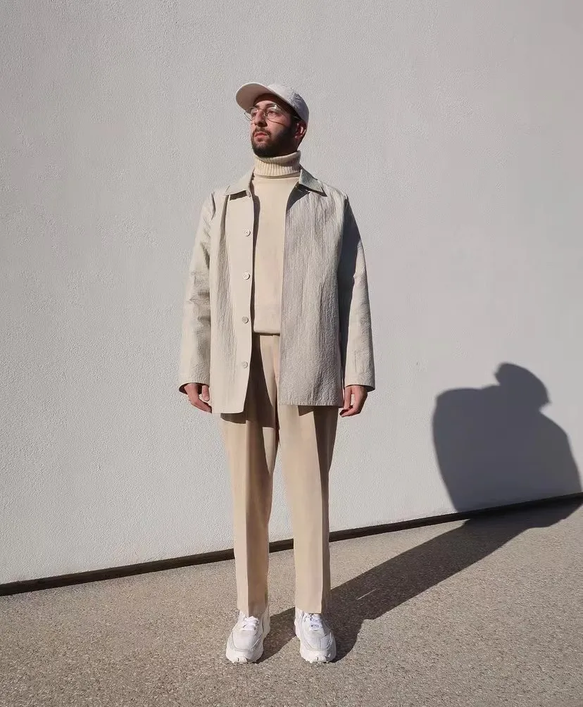 天氣再冷一些的時候,用一件面料較厚,版型硬挺的外套也是不錯的選擇,整個人的氣場既不會顯得太年輕,也不會老氣,是男性想要的親近的輕熟感。