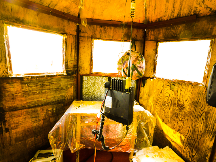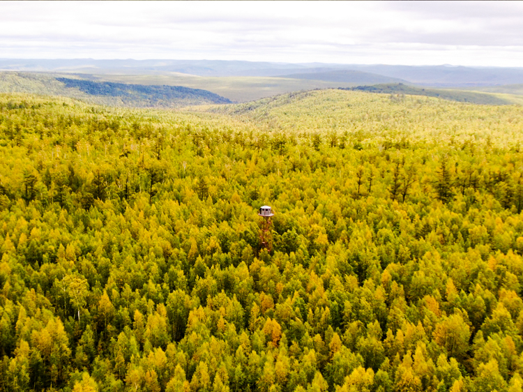 我跟著了望員上塔。鋼架微微發顫,越往上,離地越遠,振幅越大,便更加想念堅實的地面。上到頂端,呆上幾個小時,期間匯報林裡的狀況,再與另一人輪換,這是每日值班的任務。他們說,冬天金屬會結冰打滑,要格外小心。上面的棚廈並不保暖。