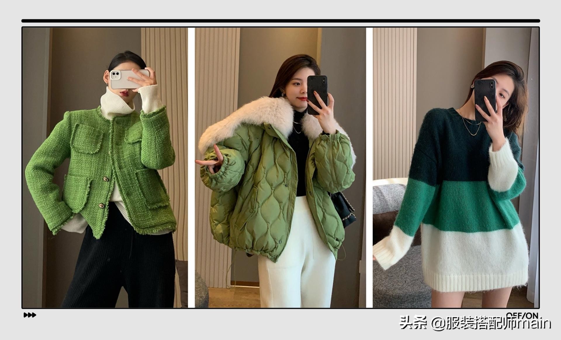聖誕節的紅色有了,怎麼能缺少綠色呢?今年的綠色依舊很火,除了能顯膚白,還可以給你一些活力