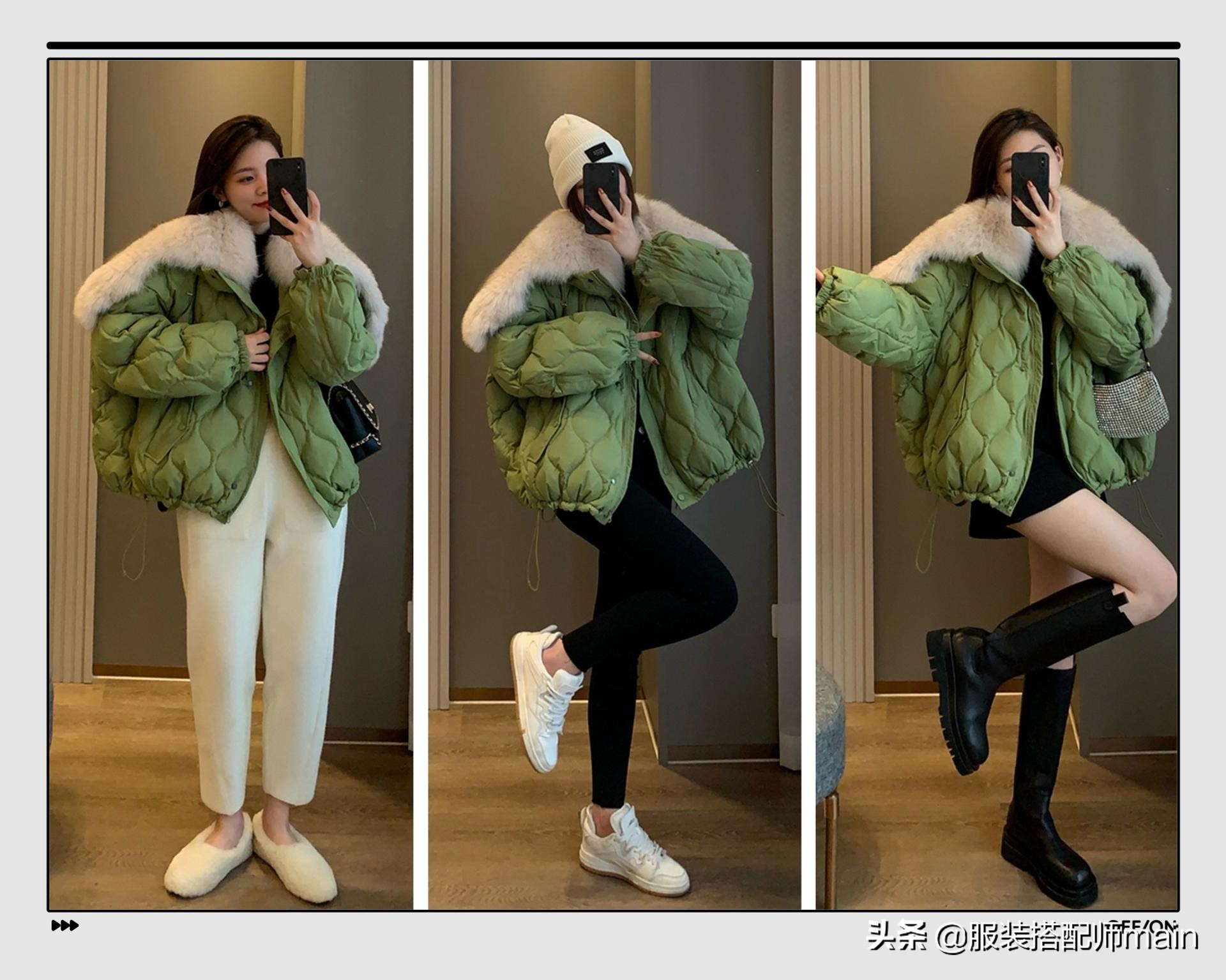 除了這大大的毛領外這件羽絨服還非常百搭,各種下裝可以隨意穿,總有一種適合你!