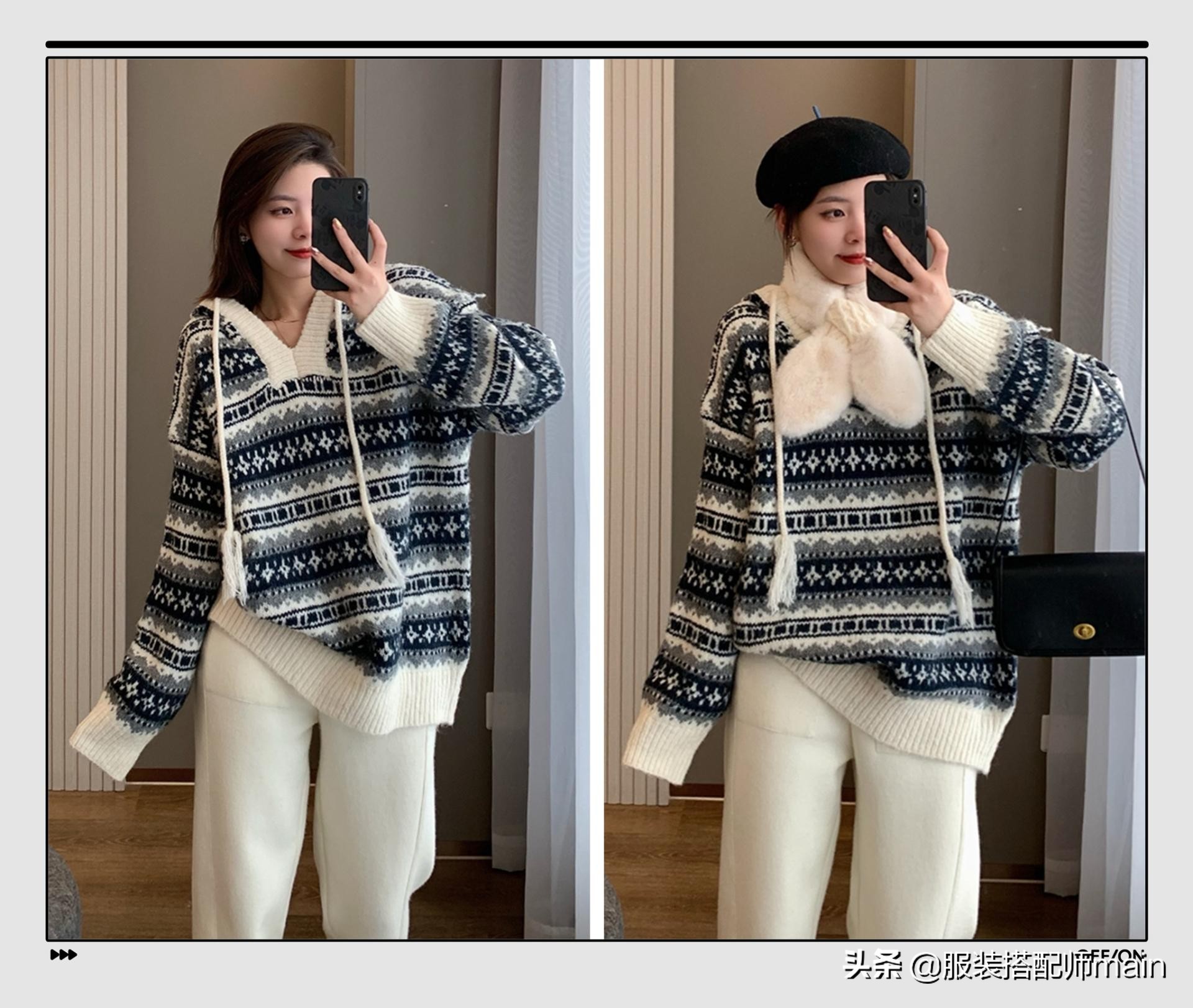 一件融入聖誕、雪花等元素的花紋毛衣,就是自帶一種復古感,同時也很適合過節時穿。