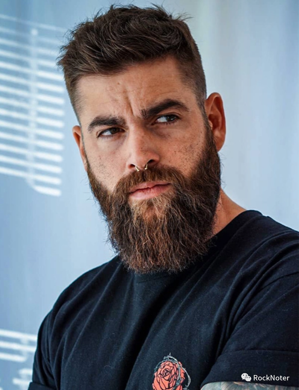 這是現代時髦的短髮。我們向獨立和酷男推薦這種髮型。此外,這種風格的特點是長鬍子。邊很短。頂部的頭髮長度比兩側略長。