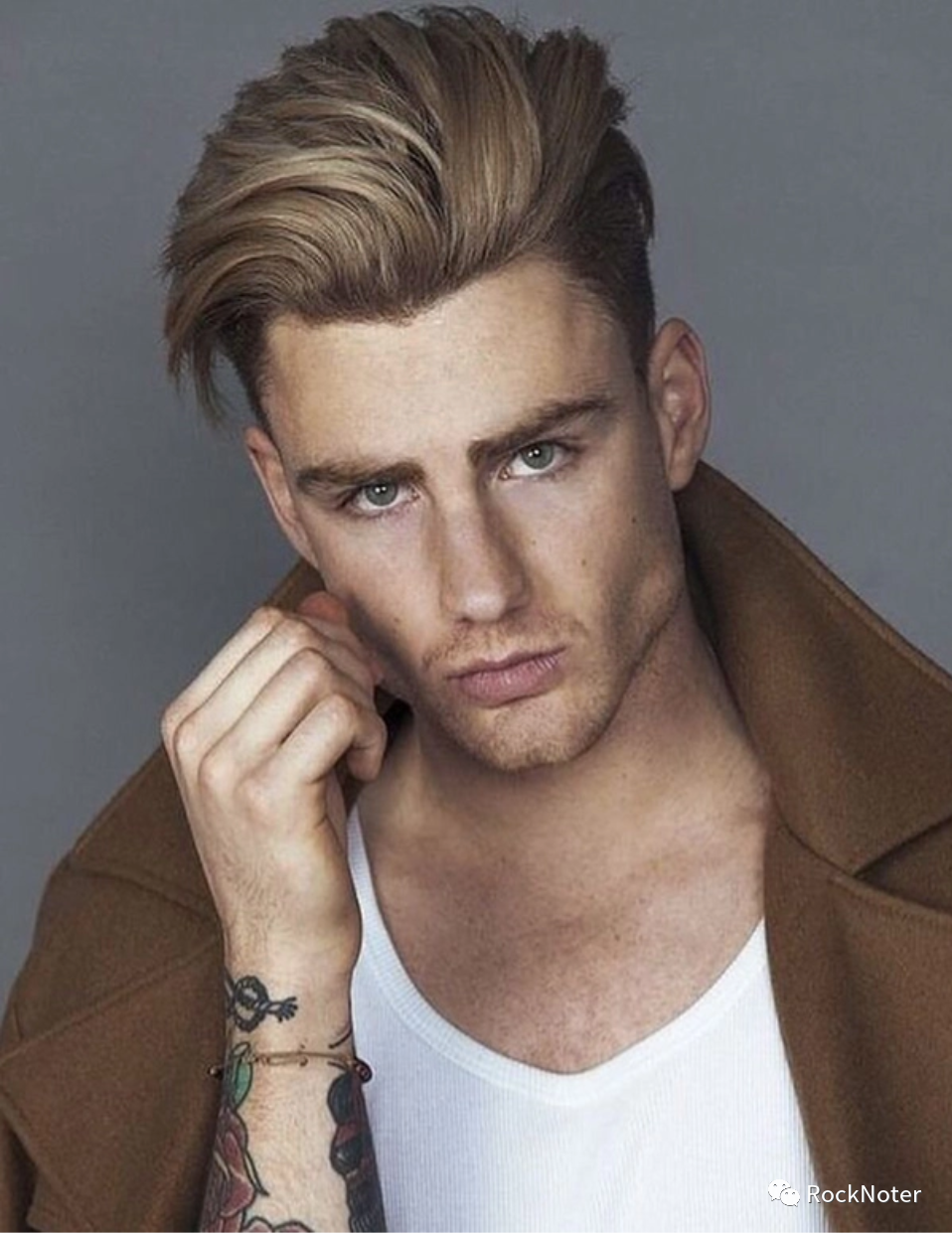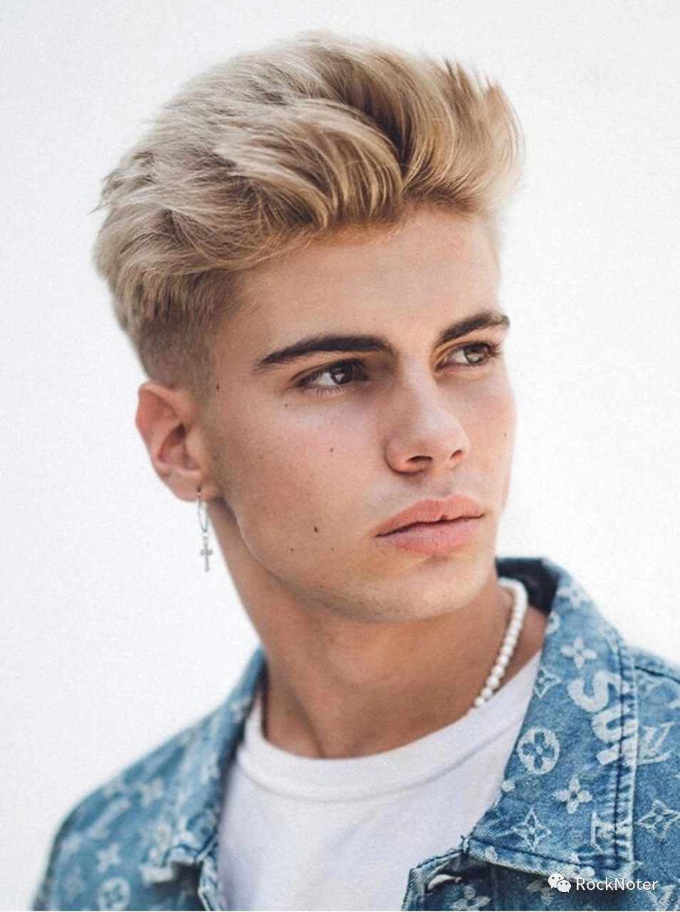 我們正在為金髮男士分享時尚的男士髮型。當然,這種髮型不一定非要金髮。但如果你喜歡,你也可以染髮。在這種風格中,側面是錐形的,頂部是笨重的。我們可以說它是一個 quiff 品種。