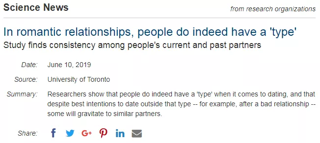 研究結果發現,這種暗自發誓要尋找一個與之前不同性格伴侶的想法,是「說起來容易做起來難」,事實上的情況是,人們往往還是一次又一次地尋找了同一類型的愛人。