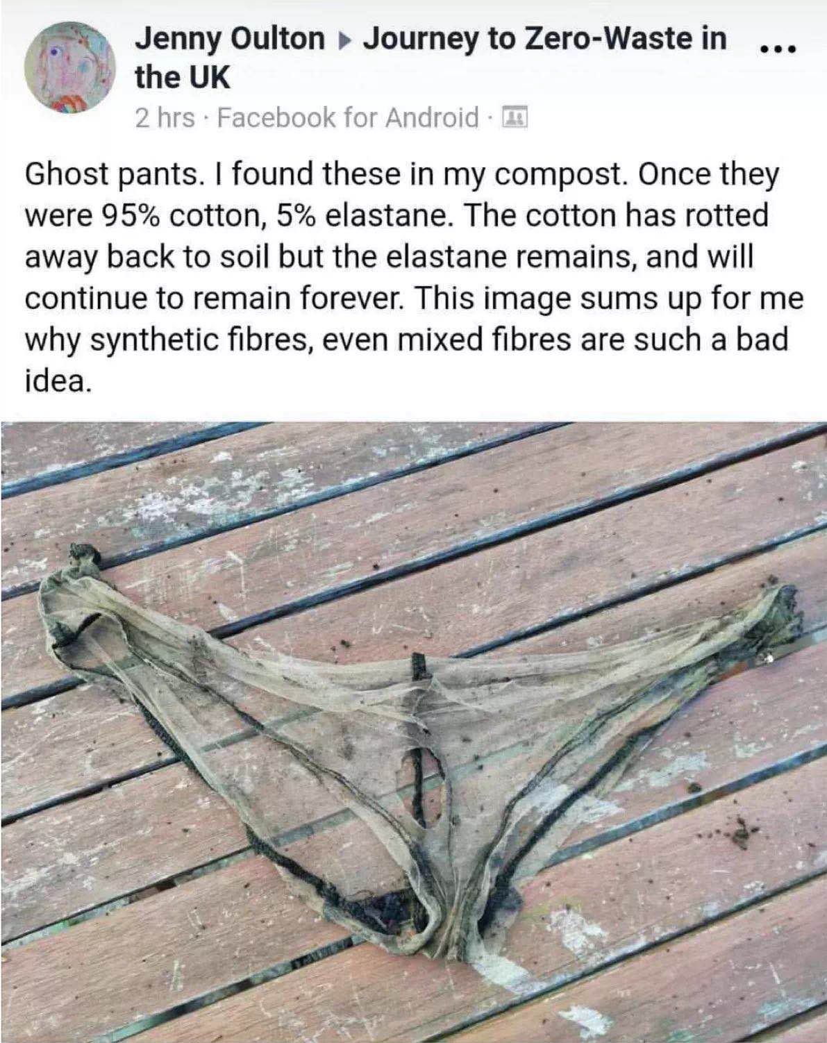 一條95%棉,5%氨綸的內褲無法完全降解的樣子。 陳艾茵 供圖