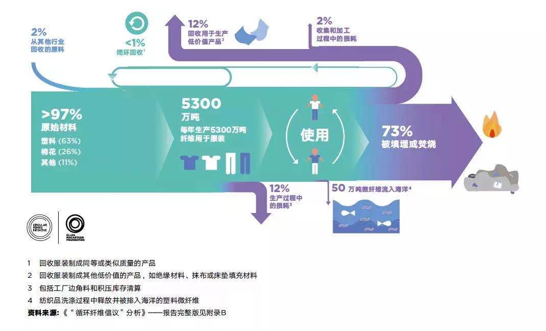 自工業革命以來,大部分人完全沒有考慮到產品帶來的環境代價以及產品的最終去向。在時尚行業裡,只有1%是的衣服可以做到閉環回收,73.5%的衣物都會被送到垃圾堆填區或者被焚燒掉。