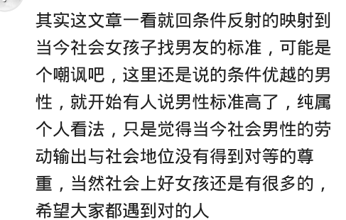 現在的男人找老婆,最低的標準是什麼?來看看網友的評論。