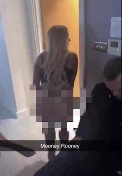 之後幾個女生輪流和魯尼蹦迪,其中一個首先拍下了魯尼和另一個半裸女生親密相擁的照片。