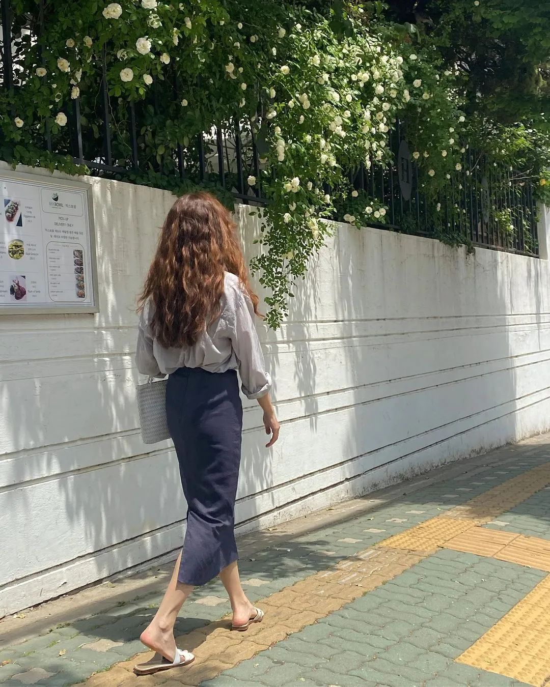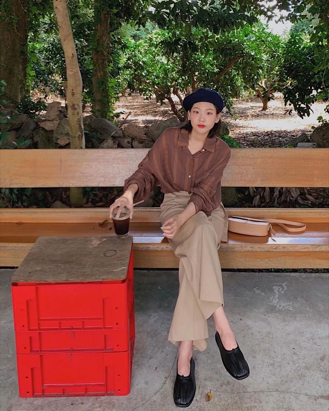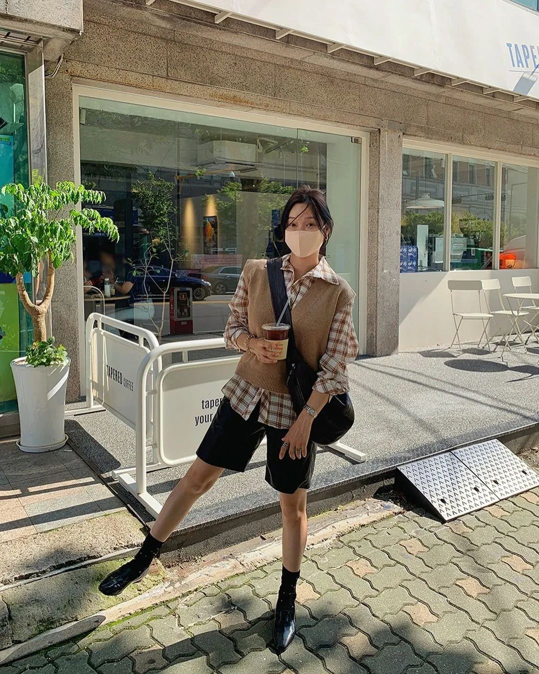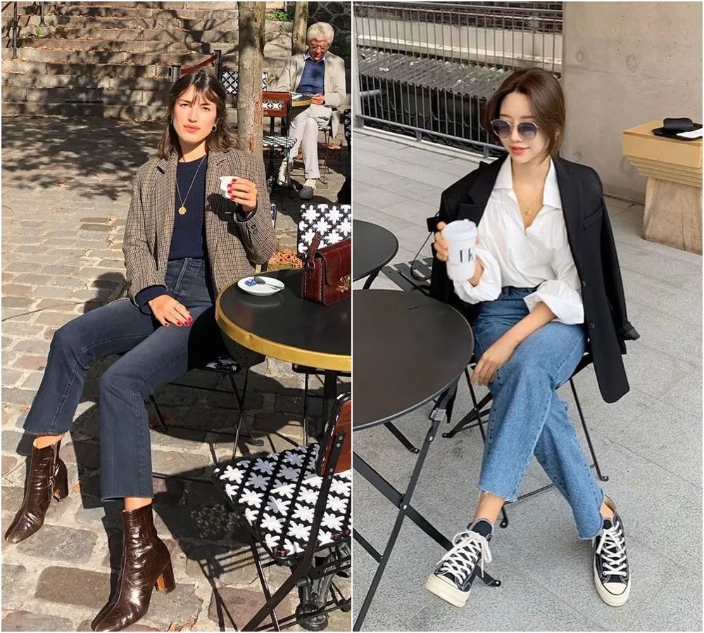 鞋子的特點也挺明顯。法式博主喜歡用修腳的粗跟靴、淺口高跟鞋來搭。而韓國博主更多的是舒適好走路的帆布鞋、運動鞋、奶奶鞋。▼