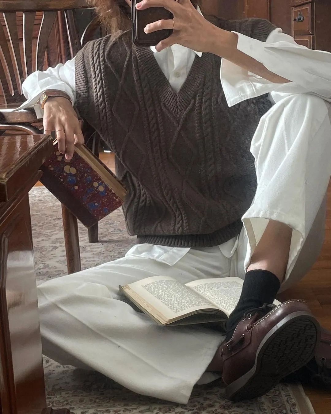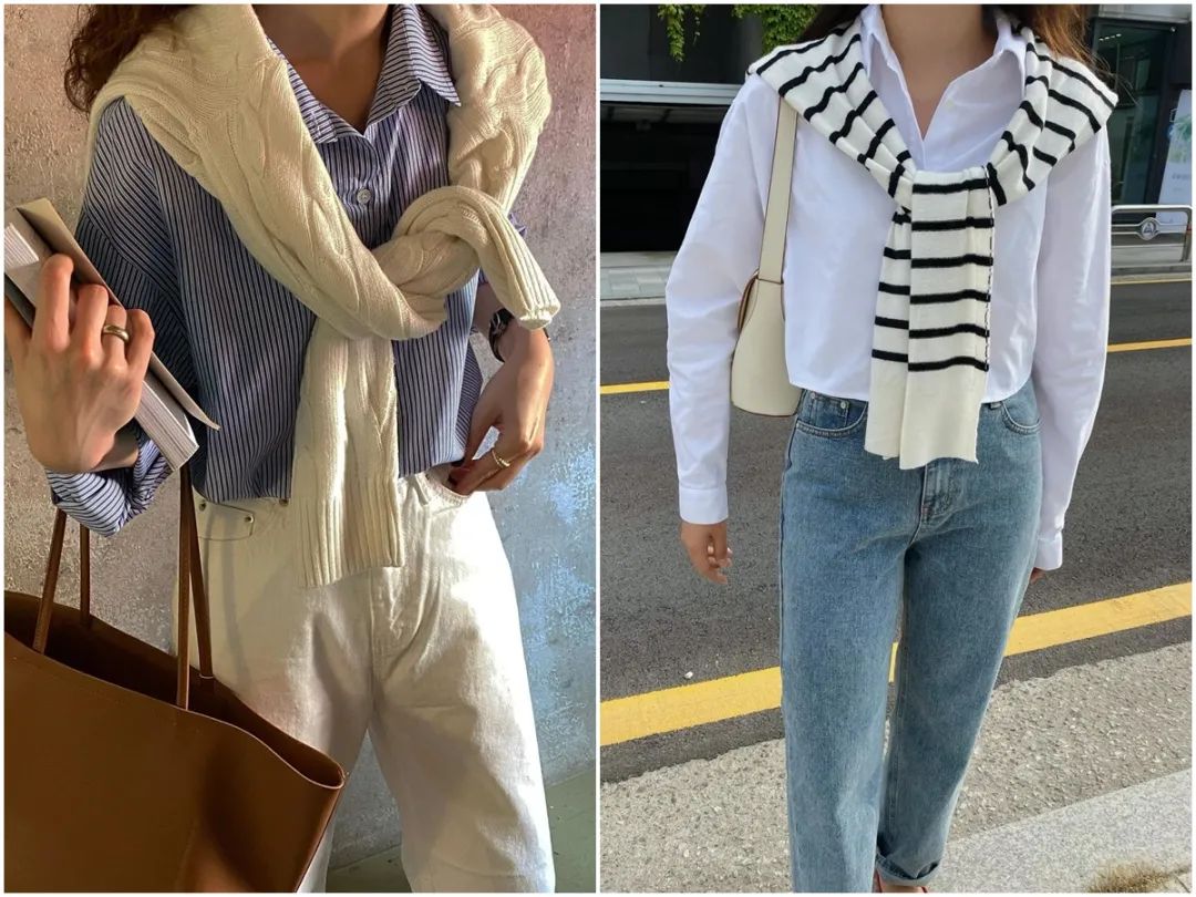 如果是有麻花編織的針織背心,還會有點小文藝,是秋天的氣氛感啊!▼