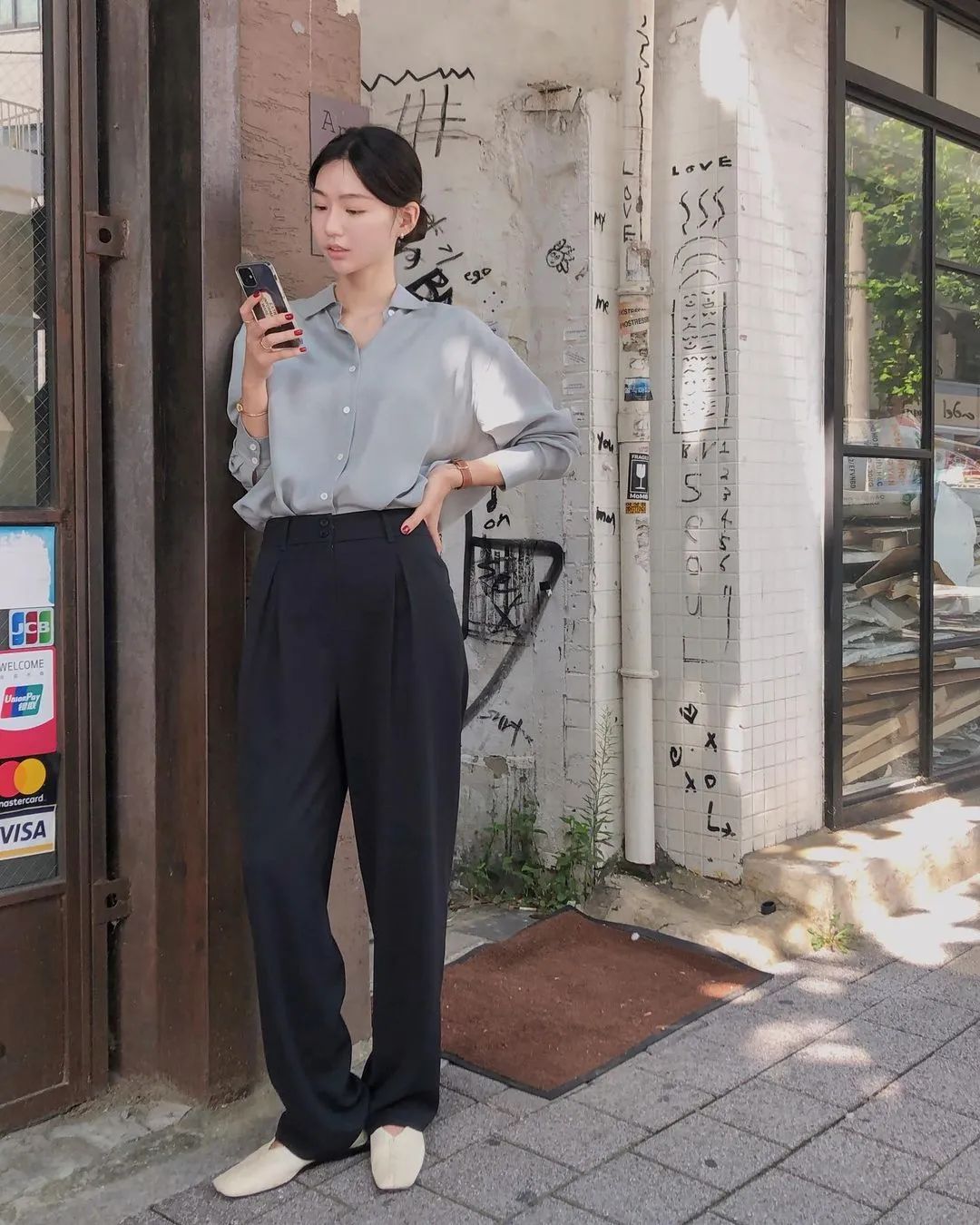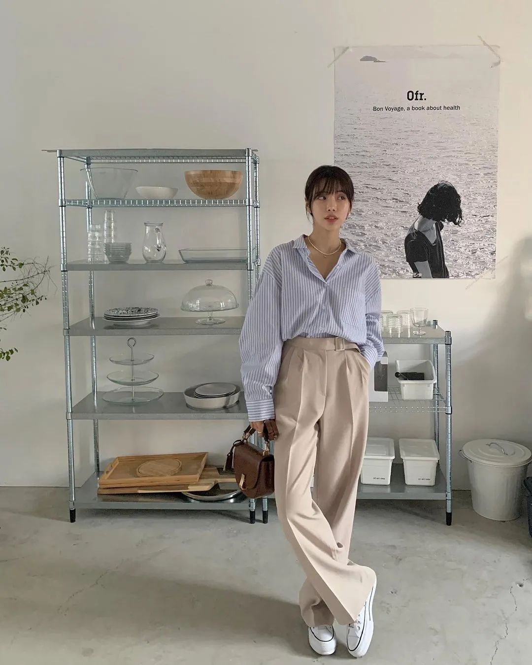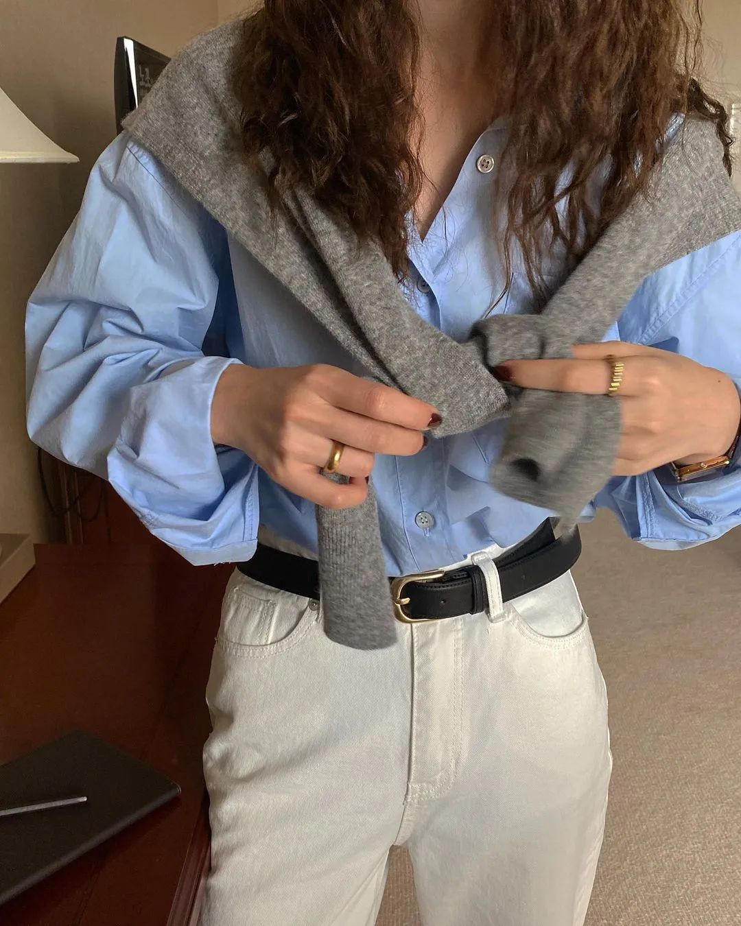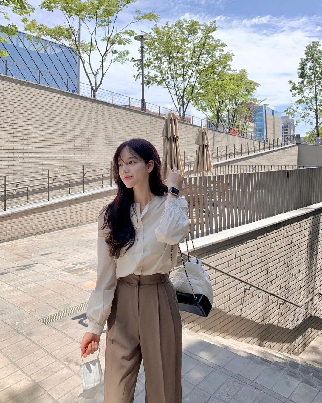 配飾和髮型也很影響整體的感覺。像歐美穿搭裡很喜歡用的大金鏈子,在韓國博主的穿搭裡幾乎看不見。