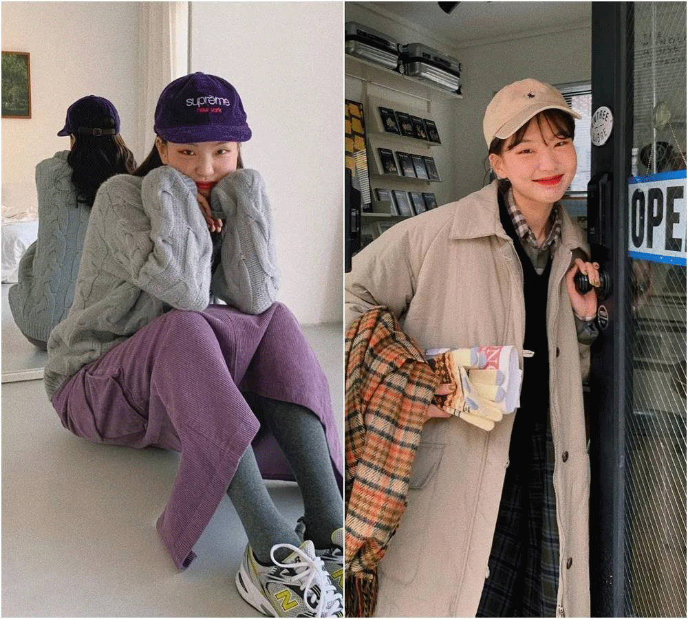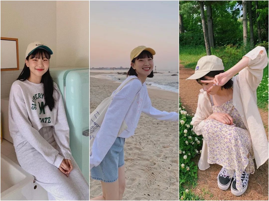 棒球帽在韓國一直都很多人戴,並不是因為這幾年Athflow風的流行才開始戴的。而且不管穿什麼衣服,她們都喜歡再加一頂棒球帽。