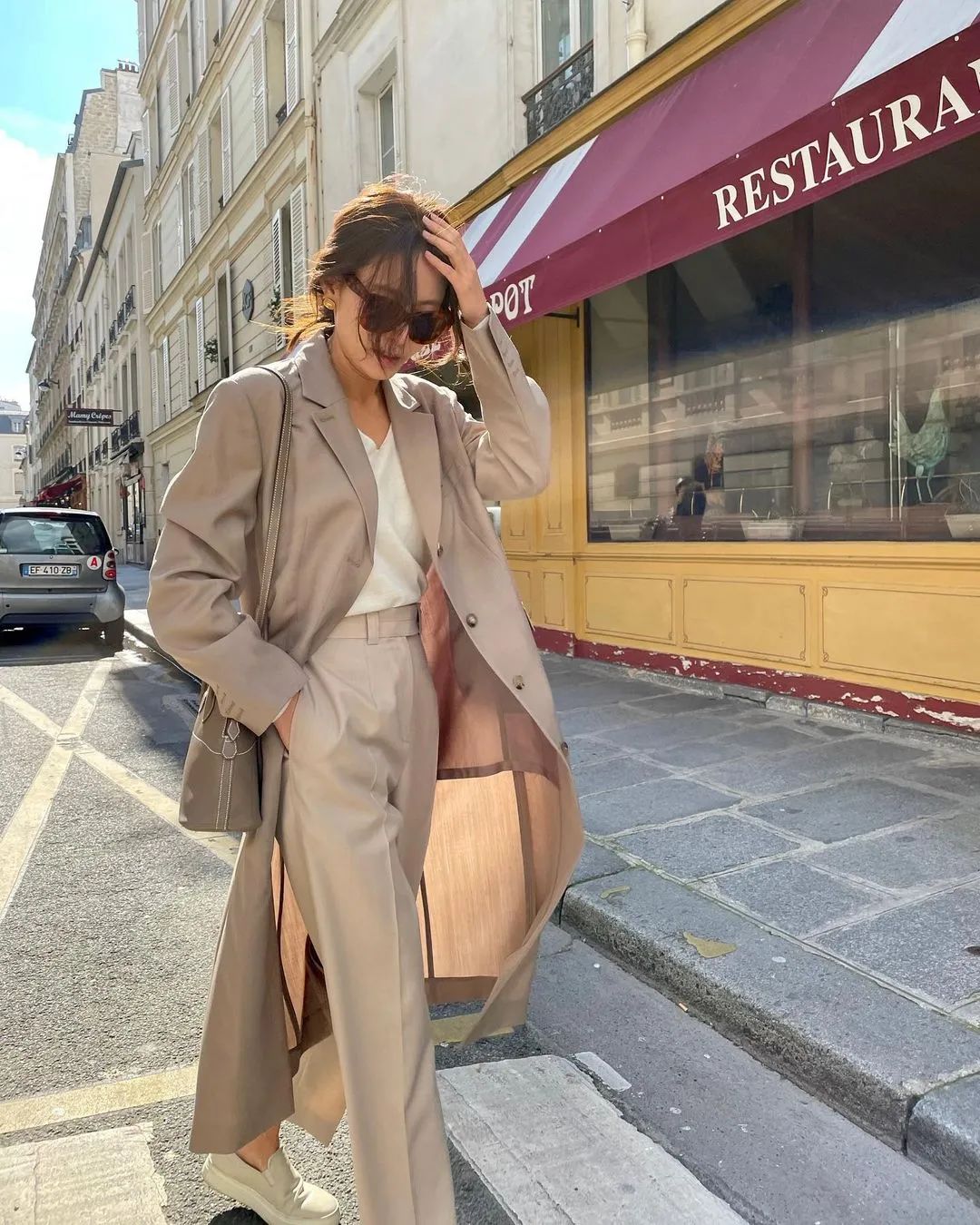 可能有人會說,西裝+牛仔褲這個招術好像法國女生也很常用啊。還是有區別的。